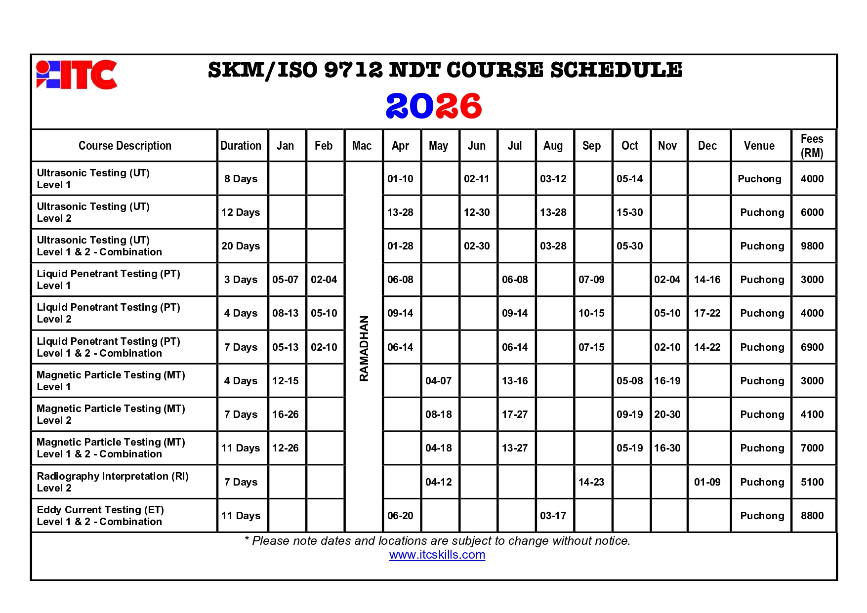 NDT SKM (ISO 9712) SCHEDULE 2026 By zamri|2026-01-18T15:14:23+08:00November 8th, 2025|Uncategorised|0 Comments Leave A Comment Cancel reply Comment Save my name, email, and website in this browser for the next time I comment.